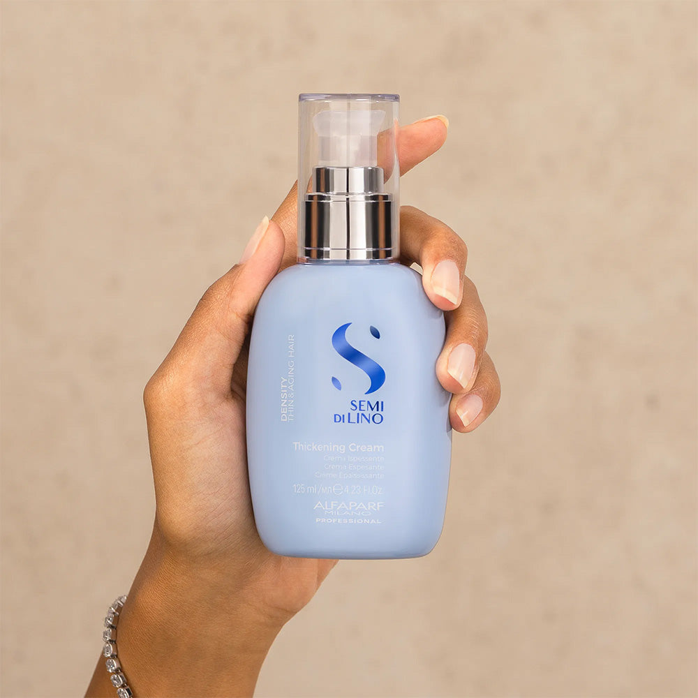 Give your hair more body, vitality, and resilience! The Semi Di Lino Density Thickening Cream from Alfaparf Milano was specially developed to give thin hair a fuller, healthier, and more vibrant appearance. The innovative formula visibly strengthens the hair structure without weighing it down and reliably protects your hair from heat and harmful environmental influences.